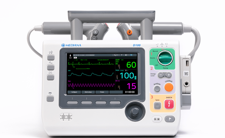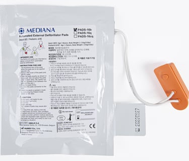 The Mediana AED is a medical device designed to restore heart function by delivering an electric shock when necessary, analyzing the heart condition of the patient in cases of sudden cardiac arrest, where the heart stops beating and oxygen supply is halted. This AED can be used anytime, anywhere, and by anyone to address emergency cardiac conditions.